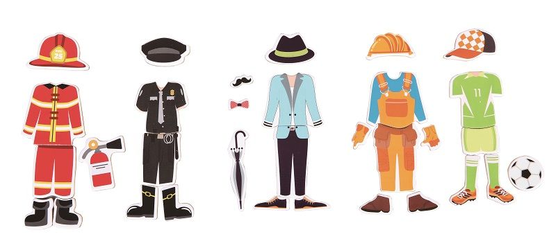 Ta magnetyczna ubieranka polega na dopasowywaniu odpowiednich akcesoriów do danego zawodu.